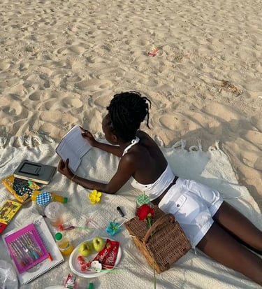 picnic in the park: stuff my basket (or large tote!) with snacks, a cozy blanket, and the book you've been procrastinating reading for the past month. find a shady spot under a tree and spend some time people-watching, eating strawberries 🍓, and letting your phone die without panic.