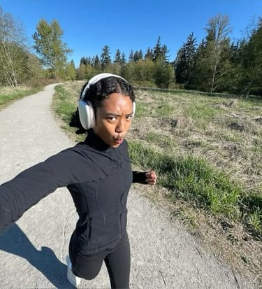 morning run with a view: wake up earlier than usual, lace up your sneakers, and took the long route. ran until your thoughts felt quiet and your cheeks are flushed. bonus: treat yourself to a smoothie after (because self-care is also in the post-run snack). have a “main character” playlist blasting the whole time.